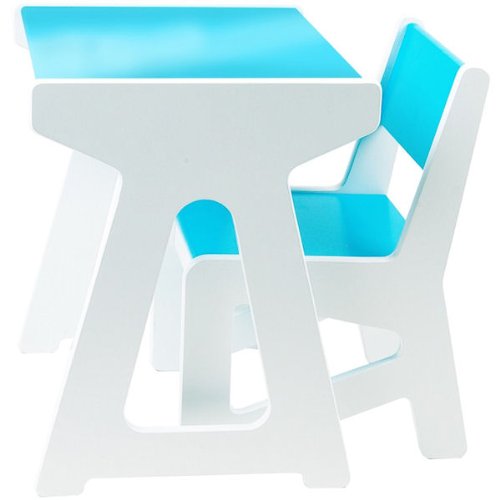 Caractéristiques du produit Table et Chaise Petit écolier design Bleu et blanc MDF laqué JIP :